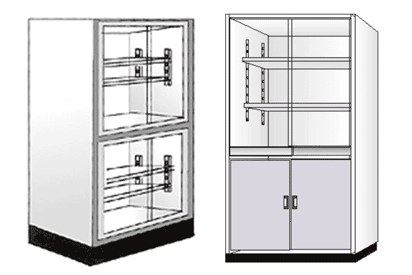 VITRINA ALTA CON TRES ENTREPAÑOS DE ALTURA GRADUABLE FABRICADA EN LAMINA DE ACERO AL CARBON CALIBRE 20 CON APLICACIÓN DE PINTURA ELECTROSTÁTICA EN POLVO EPOXI-POLIESTRE ENDURECIDA EN HORNO, LAS CUATRO PUERTAS SON CORREDIZAS DE VIDRIO DE 6 MM. DE ESPESOR, CON HERRAJE DE ALUMINIO.